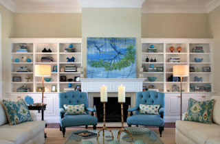 3.) Use more water colors in your space with pillows, rugs, and curtains.
